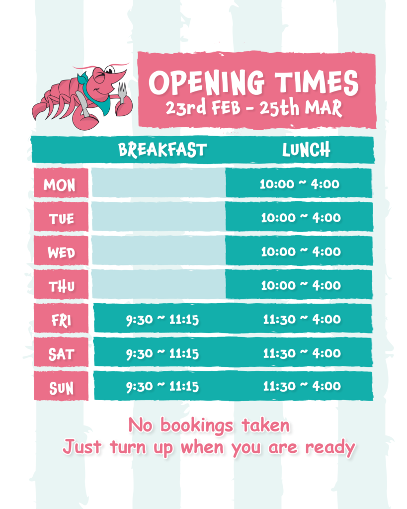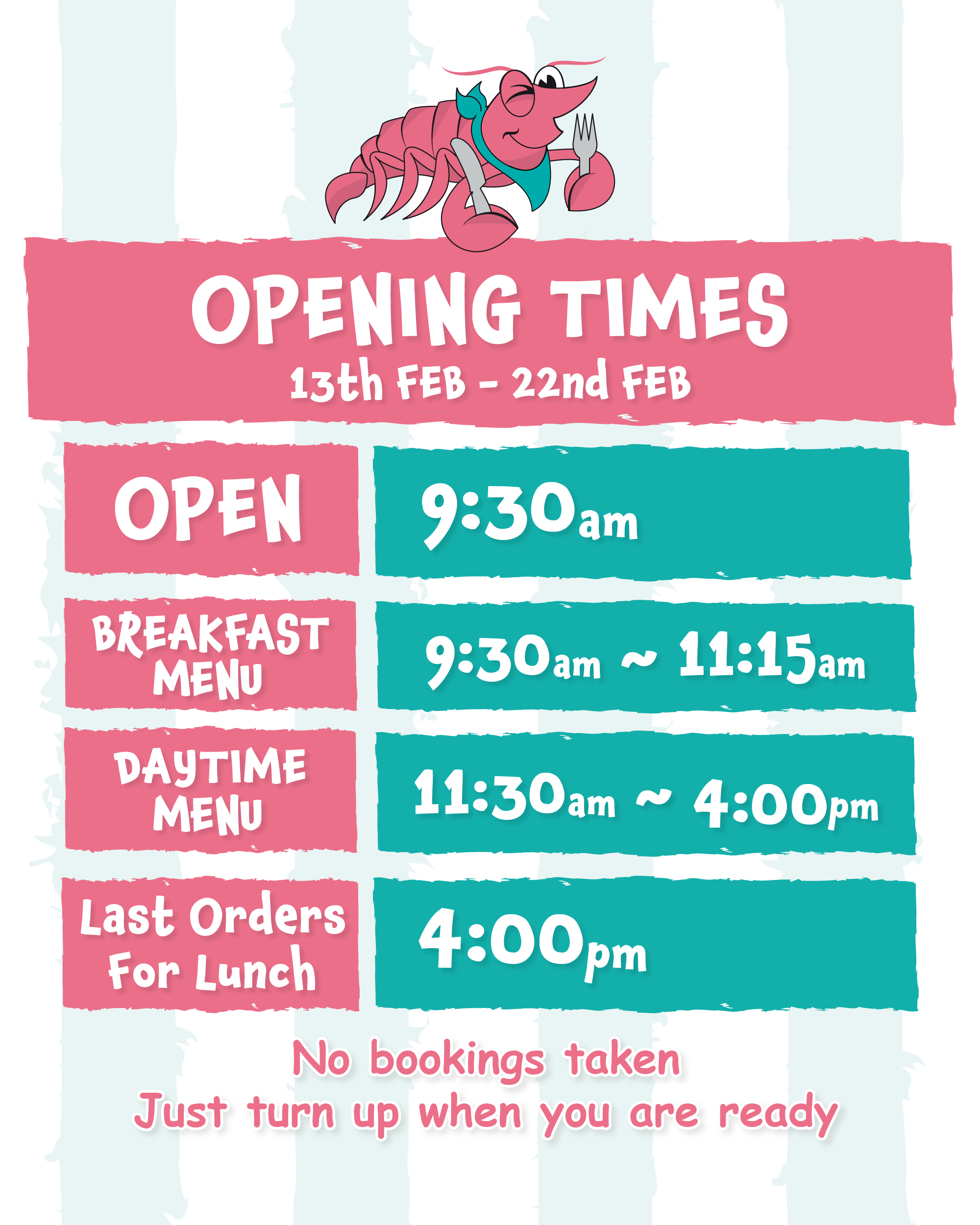 Please note: If you are popping along for Breakfast or Lunch, opening times may vary, please check before you visit. Booking not required.